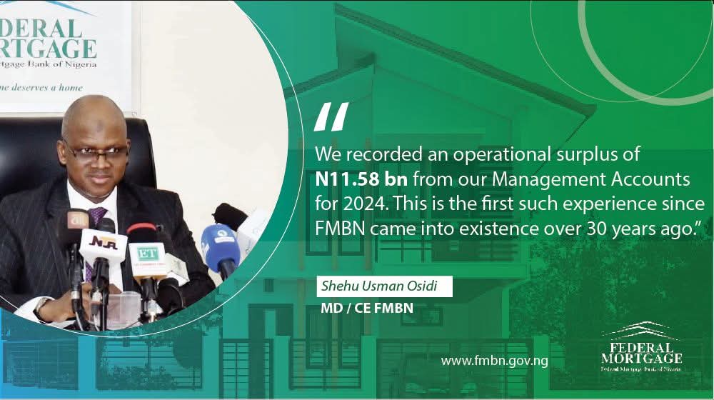 "In the past one year, through our strategic focus on revenue growth, prudent financial management and cost-efficiency measures, we reduced operational expenses while maintaining service excellence. There was improved discipline across the organization leading to better utilization of resources. "These efforts have resulted in an operational surplus of N11.58 billion from our Management Accounts for 2024. This is the first such experience since FMBN came into existence over 30 years ago. Although this figure is expected to come down significantly when impairment is applied, we have set out to tackle frontally all aspects of our operations that lead to high impairment on our results especially in tackling the high non-performing loans inherited by the current Management, and pursuing with great efforts the recapitalization of the Bank."